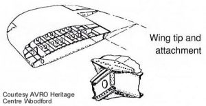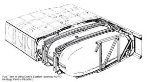 As with the fuselage design, the wing was divided into transportable sections. The 28ft 6″ parallel wing centre section passed through the main fuselage section. The undercarriage bays & the Rolls Royce X-24 Vulture engines were contained in nacelles mounted at the outboard ends of the wing centre section. the depth of the parallel section was 2ft 11″, 18% thickness/chord ratio being selected at the best compromise between airframe strength & aerodynamic drag. The fuel tanks were mounted between the wing spars, & held in place by simple strap & turnbuckle attachments. Access was gained from the underside of the wings.