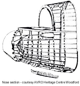 After acceptance by the Air Ministry, a contract was issued for the manufacture of two prototypes. On 1st July 1937, a further contract was issued, for the supply of 200 production aeroplanes. In January 1937, AVRO had already decided, that changes needed to be made to the design. This was quite common, at the prototype stage. The fuselage length changed to 69ft 4.5ins, and changes were made to the shape & skin curvature, to make design and manufacture more straightforward. From a previous 72ft, the wingspan went up to 80ft 2ins. Tailplane span remained at 28ft, but the fins and rudders were moved fully outboard. The aerofoil section now selected was the NACA 23000 series, 23018 over the centre section, 23018 reducing to 23009 for the outer wing. Avro production experience up to this time, was largely as a woodworking firm. A production contract for 1,000 Bristol Blenheim Aircraft in 1937, gave the company valuable experience of stressed skin construction. Avro were breaking new ground, in the milling of Hiduminium L40 spar sections of the size required for this aeroplane. The main centre section incorporating the parallel cord wing centre section, formed the heart of the aircraft. The wing incidence was set at 4 degrees up to the fuselage centre line.