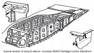 The structure of the wing centre section was based on two spars of simple construction, both consisting of mass booms and plate webs. Running at right angles were two fuselage longerons which formed the basis of the cabin floor & the bomb bay roof. The aircraft needed to be “simple” to aid easy manufacture, and a high rate of production. Light alloy was used for the manufacture of most components, and stampings & pressings were used to minimise hand fitting work.