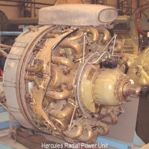 The Bristol Aeroplane Co Ltd, was founded in 1910. The company designed and started to produce radial air-cooled aero-engines in 1920. From 1936 up to the end of the War in Europe, Bristol built over 101,000 engines, 54,700 of which, were the Hercules version. The Bristol Hercules Mk VI & XVI, was used in some 300 Avro Lancaster Mk II’s, reaching Squadron service. This engine had 14 air cooled cylinders arranged in twin rows, staggered radially around the crankcase. The crankshaft is in three sections, and incorporates Saloman dampers in each crankweb to damp out torsional vibration. Unlike the Merlin, which used conventional “poppet” valves, the Hercules used a sleeve valve system. Each cylinder assembly comprises an aluminium alloy cylinder barrel in which a steel-alloy sleeve operates. The sleeve moves inside the barrel, controlled by an eccentric crank. This allowed the gases to come in and out of the cylinder. Timing overlap came out at 40 degrees.